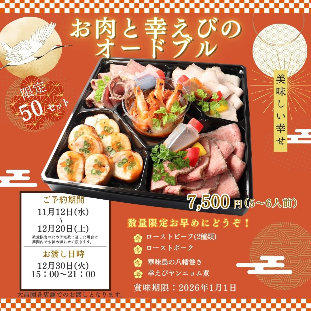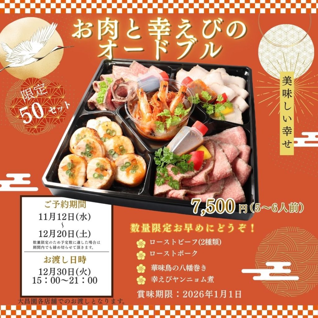 お知らせ 2025.11.21○12/30お渡し限定!「お肉と幸えびのオードブル」○