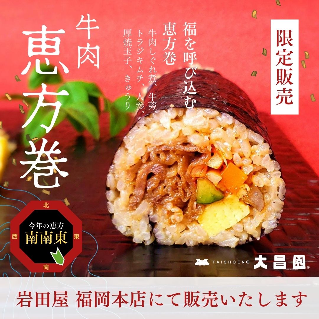 大変ご好評いただいております、焼肉の大昌園「特製 恵方巻」は今年も《岩田屋 福岡本店》様にて期間限定で販売いたします😍! […]