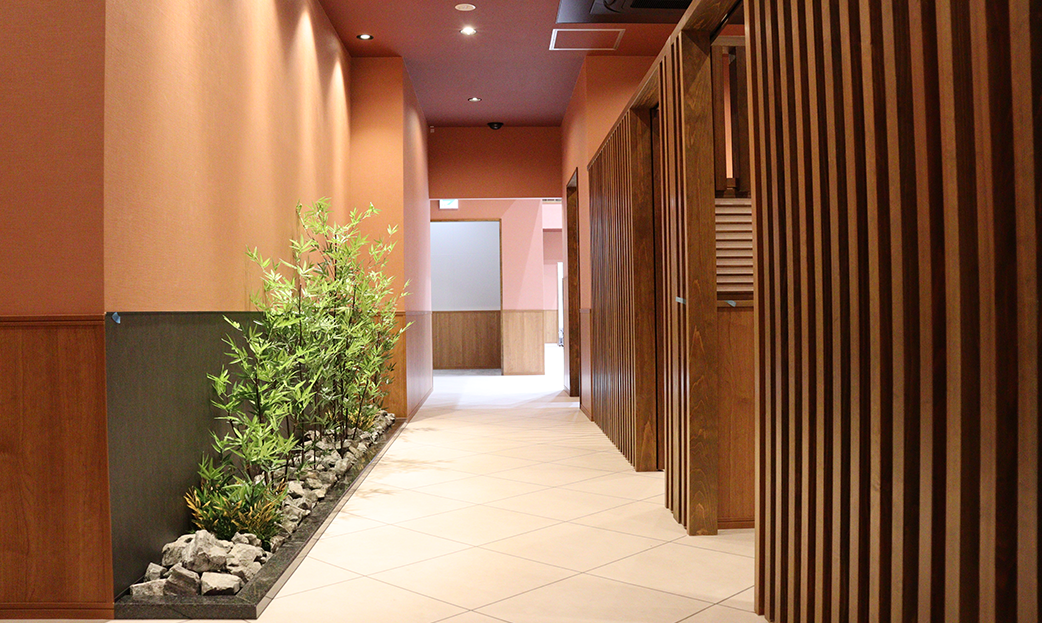 店内には充実のテイクアウト、大小個室や授乳室も完備。